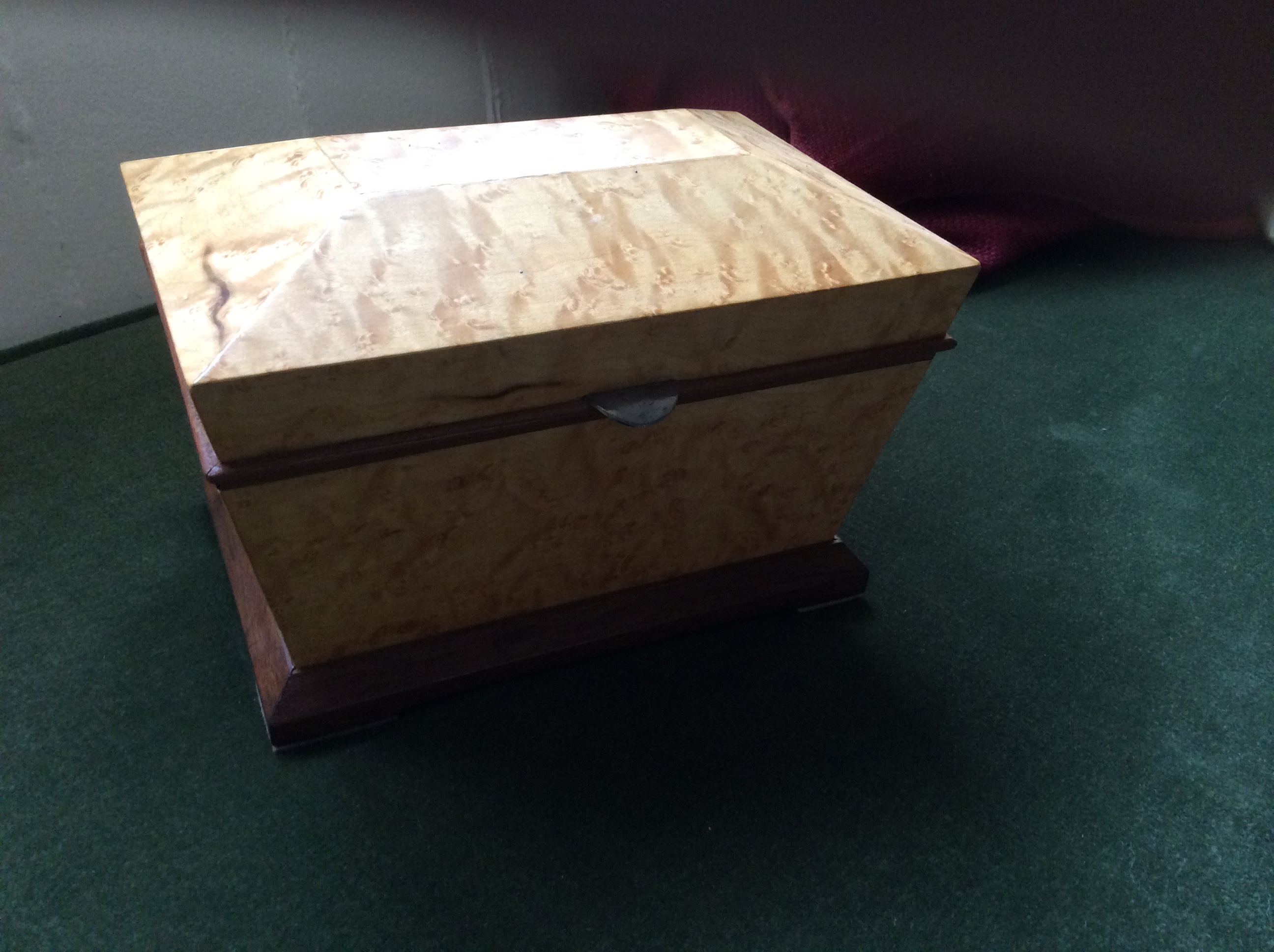Then one year he arrived with a big parcel strapped to the roof of his small car, which he had driven all the way from Gloucester.   This time it was no small apprentice piece, but a full-sized mahogany chest of drawers —-  5 drawers high, 4 drawers wide, each drawer perfectly fitted and made with sixteen dovetail joints, that makes 320 dovetail joints just for the drawers. Then there were 20 identical lathe turned holly button handles.   It was a masterpiece of craftsmanship that took him almost a year to do.