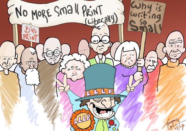 If you don’t want older people to read or understand things, for instance legal terms and conditions, the frequently used approach is to write it in small, unreadable print, like this is!